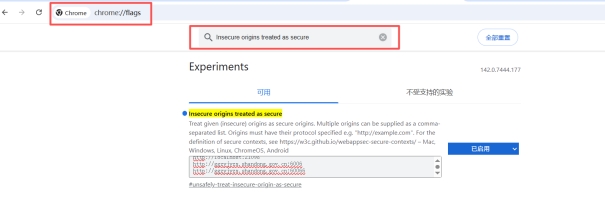 搜索 Insecure origins treated as secure